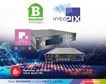 intoPIX 宣布 Barnfind Technologies 已将intoPIX JPEG XS 编解码器集成到其 BarnPalette Flow-XS 产品线中。这一集成实现了超低延迟的高质量视频传输和转换,为广播基础设施带来了新的效率和可靠性。